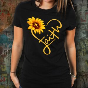 Jesus Sunflower Faith T Shirt Christ Gifts For Christian Women Tee Cross God 020